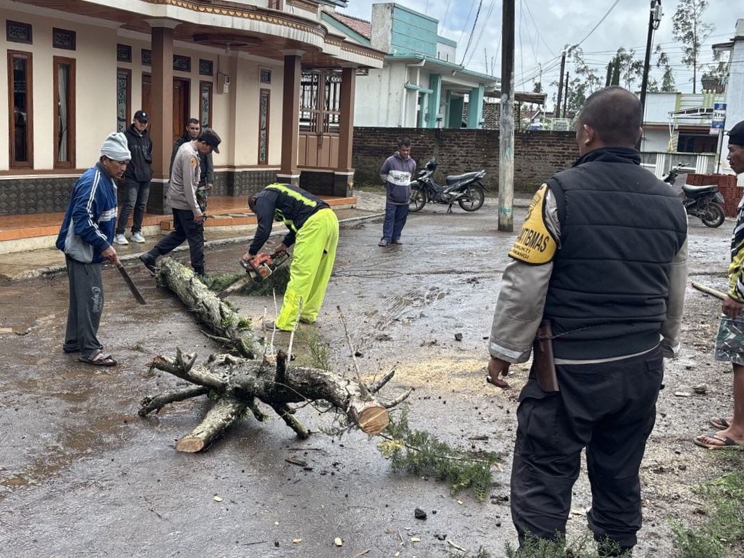 Terima Laporan Warga, Polsek Pasirwangi Garut Gerak Cepat Evakuasi Pohon Tumbang di Padaawas