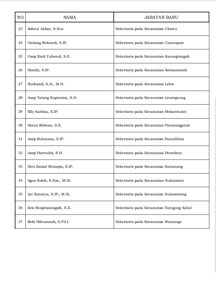 Berikut nama-nama pejabat yang dilantik :