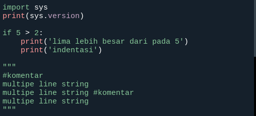 Python juga memiliki komunitas besar dan bisa dijalankan di Windows, Mac, maupun Linux. Kesederhanaan dan fleksibilitasnya membuat Python menjadi salah satu bahasa pemrograman paling populer di dunia.